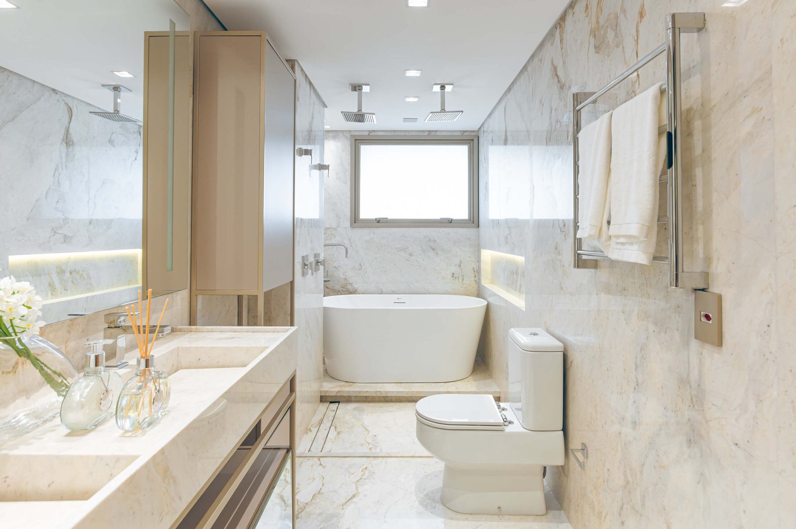 Na área íntima, o imóvel conta com 3 suítes confortáveis, planejadas para garantir privacidade e bem-estar aos moradores. A suíte principal possui dimensões generosas e espaço ideal para closet, reforçando o padrão elevado do projeto.